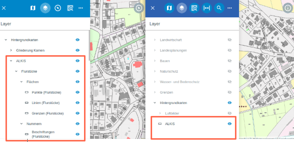Die Funktion „Räumliche Flurstücksuche“ und das Werkzeug „Räumliche Suche“ wurden in ihrer Funktionalität und Bedienung synchronisiert. So ist die Verwendung intuitiver.