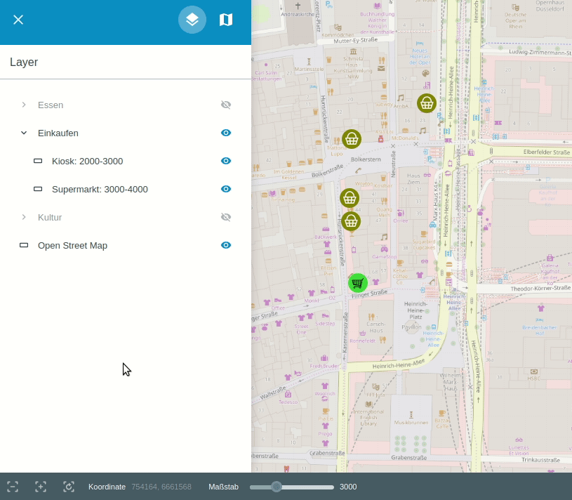 - Maßstabsbezogene Ebenendarstellung im Layerfenster